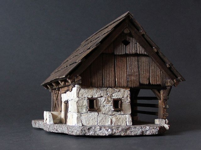 Rich architectural tradition of Slovenian landscapes constitutes an important segment of the heritage of folk architecture. The use of natural building materials, their layout and functionality of today especially impresses in contemporary architecture. Stone and wood, the two most significant structural components that are used by our ancestors in the construction of their dwellings and ancillary buildings inspired by Marjan Rogelj to link them into a breadboard people's houses. His experience in wood processing, in particular, an excellent knowledge of stone treatment at the patient and meticulous work showed the first results. By carefully studying the characteristics of buildings built of stone and wood wants interweaving into their models of the architectural heritage of Slovenian regions.